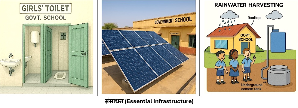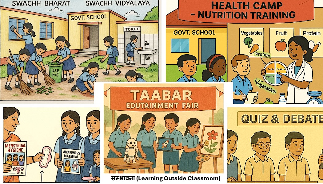 Practical computer literacy (incl. MS Office) and “Coding, AI & Robotics”, delivered through labs, DRCs and camps—especially for girls stepping into tech.