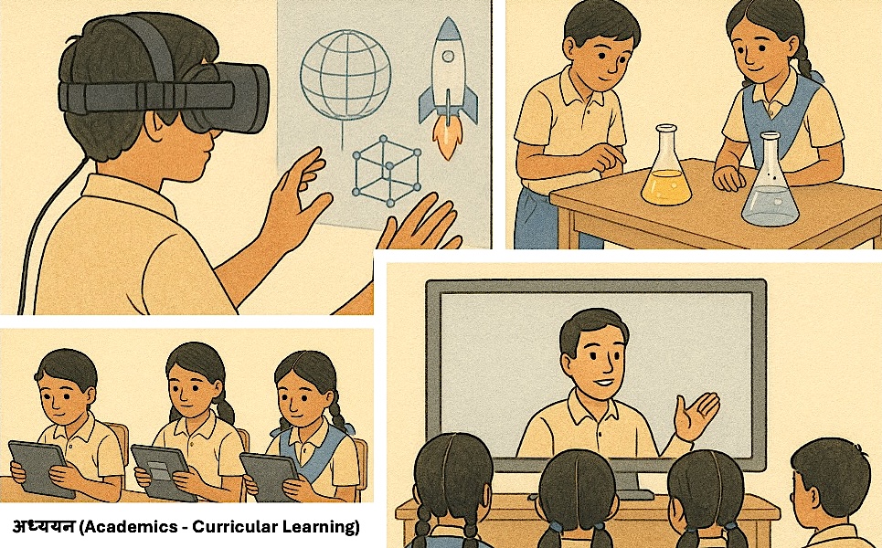 Online classes in schools, personalised app access, tablet-based digital assessments, MathLab practice and even VR science to turn concepts into understanding.